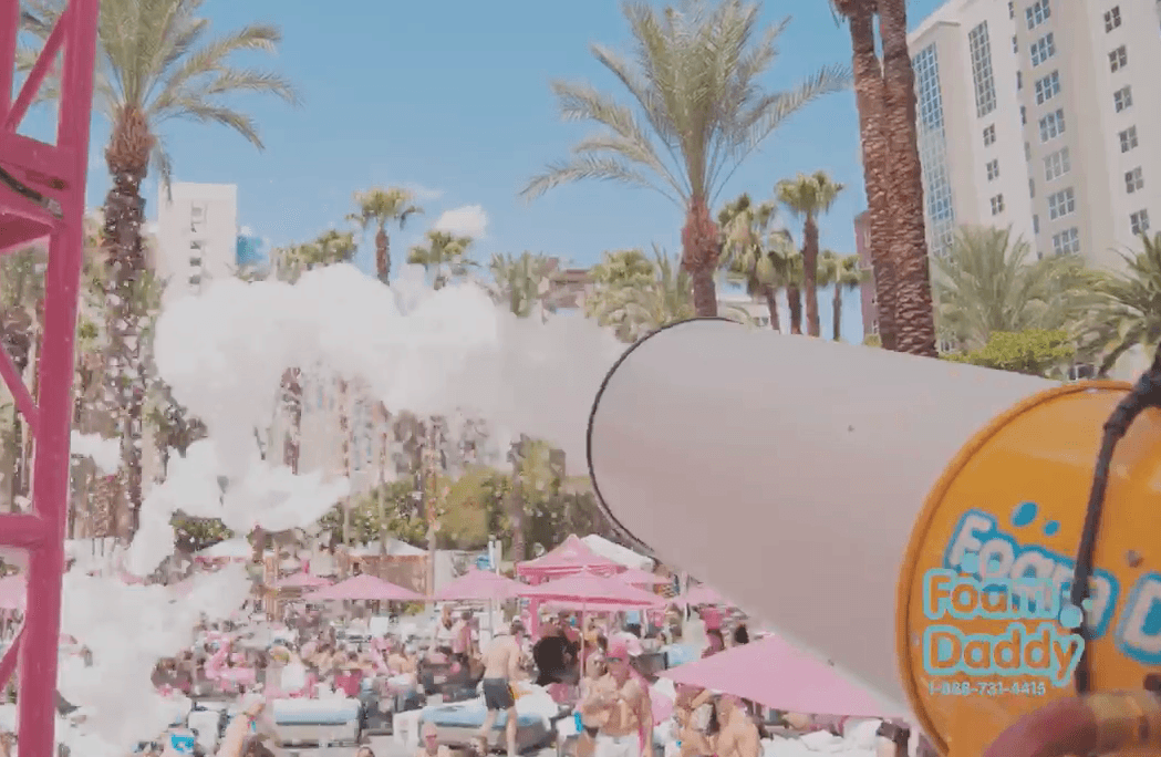 Our standard foam party setup—including the foam cannon, foam solution, and water connection—takes about 30 minutes.